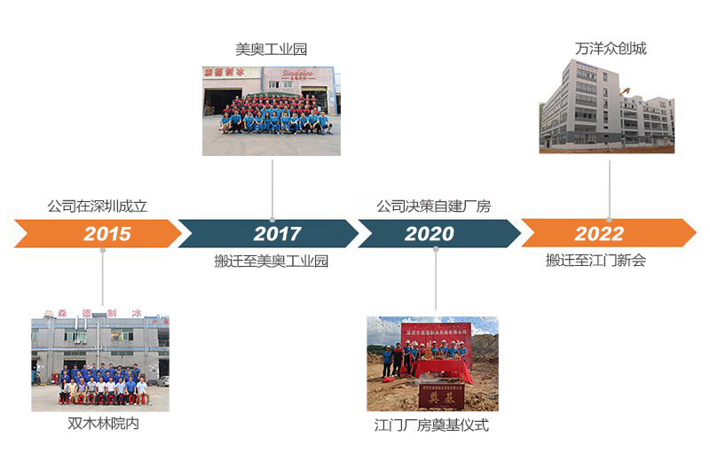 森德制冰2015年9月成立,歷經(jīng)7年發(fā)展,公司不斷發(fā)展壯大,先后從深圳松崗雙木林搬遷至松崗美奧工業(yè)園,農(nóng)歷2022年底公司再次搬遷至江門(mén)新會(huì),現(xiàn)有序恢復(fù)生產(chǎn)中。